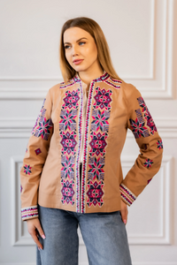 Discover authentic Ukrainian craftsmanship in this Eco jacket, where traditional embroidery meets modern sustainability. This stunning piece features eco-conscious linen-nettle fabric that's gentle on the environment while delivering exceptional comfort for everyday wear. The intricate embroidered details showcase cultural heritage with understated elegance, making it a versatile addition to any wardrobe. Whether you're drawn to meaningful design or seeking a garment that tells a story, this beige jacket offers the perfect blend of timeless beauty and contemporary style. Wear it with pride and purpose.