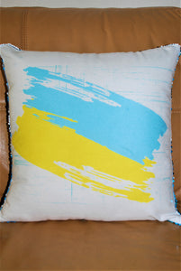 A fun and addictive flippy pillow is a perfect decor accent for your Ukie home and original gift idea. With a slide of your hand reverse the shimmery sequins to a completely different look - a patriotic Ukrainian print.