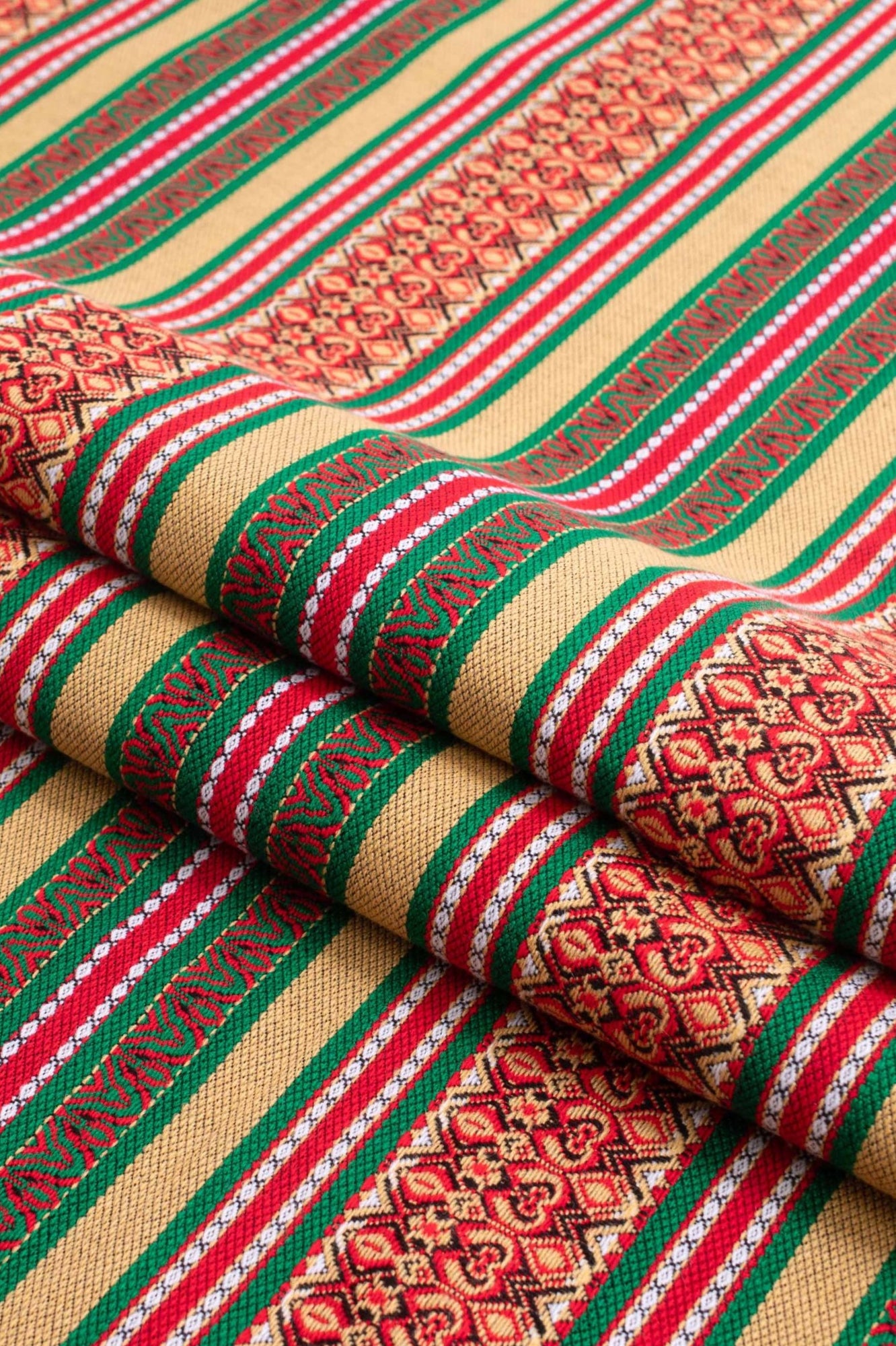 Bright and colorful fabric with authentic Ukrainian ornamental pattern.