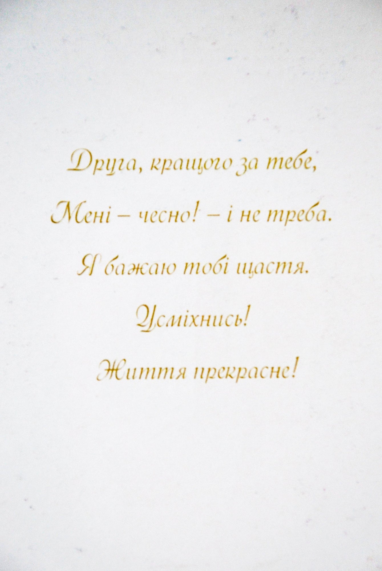 Glossy and shiny greeting fold-card with rich golden print.