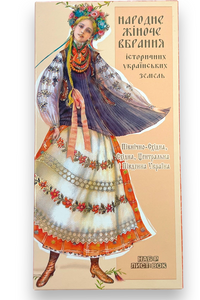 A special art edition - set of 10 double-fold cards depicting women's folk costumes of various historical regions of Ukraine: Polissia, Chernihiv, Poltava, Slobozhanschyna, Zaporizhia, Vinnytsia, Odessa, Crimea. Glossy and shiny greeting cards with rich golden detailing.