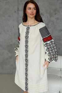 Discover the rich tradition and vibrant beauty of our "Podillia" Ukrainian embroidered linen dress. Crafted with exquisite embroidery that honors authentic Ukrainian artistry, this dress combines natural linen comfort with stylish versatility. Ideal for everything from everyday wear to special celebrations, its classic design brings a sophisticated cultural flair to your wardrobe. Celebrate your heritage confidently and gracefully, whether you wear it simply or enhance it with your favorite accessories. The "Podillia" dress unites meaningful craftsmanship with effortless elegance. A matching belt is included.