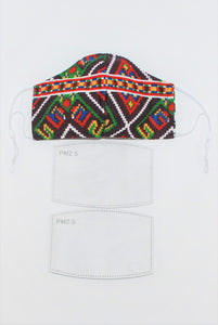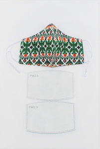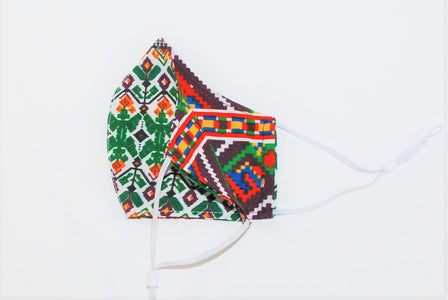 This double layer mask is fitted to the facial curves with elastic bands attached as ear loops.