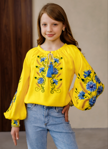 Girl's "Cornflower" yellow blouse with blue embroidery
