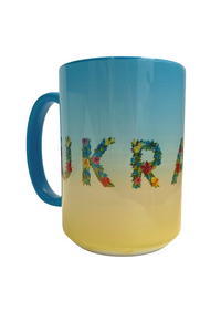 Customized premium blue handle ceramic coffee mug 15 oz.