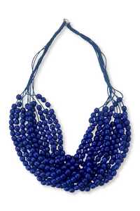 A unique creation by a Ukrainian master - a combination of woven cord and wood beads of different sizes. Lightweight and natural, full of character and folklore feel. The necklace is 11.5 inches deep, 19" around the neck.