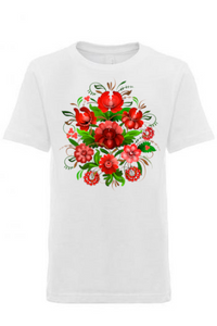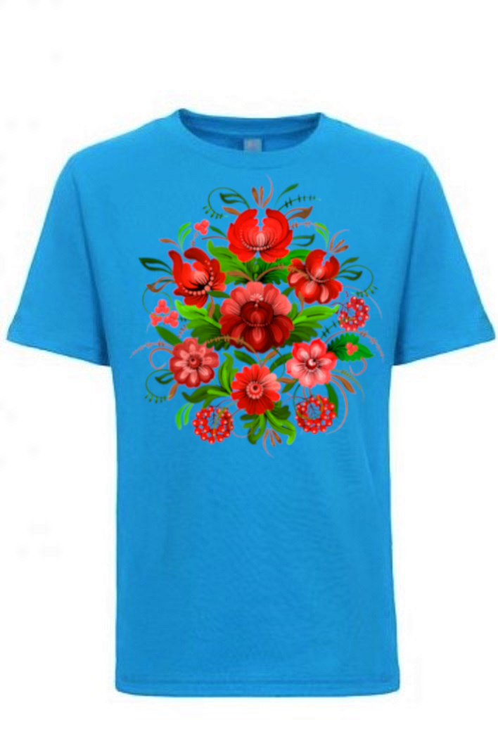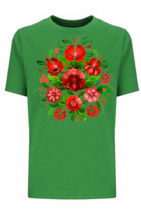 A comfortable t-shirt featuring a striking Ukrainian Petrykivka design, showcasing intricate folk art patterns and vibrant colors. Petrykivka is a traditional Ukrainian decorative painting style with a long history. It is inscribed in the UNESCO Representative List of the Intangible Cultural Heritage of Humanity. This recognition highlights the significance and value of Petrykivka as an important cultural heritage that should be preserved and promoted for future generations to appreciate and enjoy.