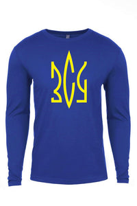 Stylish and contemporary shirt with HTV print of Ukrainian Trident in patriotic blue and yellow colors.