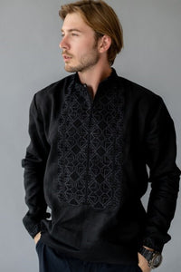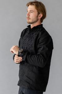 Men's black linen Vyshyvanka with black embroidery