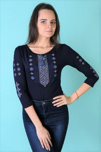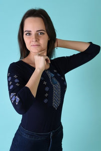 Women's 3/4 sleeve shirt with real embroidery "Lvivska". Blue