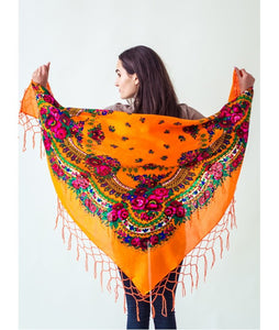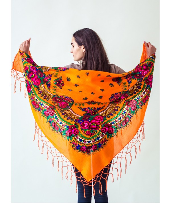 Vibrant and extravagant accessory, that has a long history in Eastern Europe, is back in style. Ukrainian shawl with bright and attractive, chic and dynamic floral print design will surely be noticed everywhere you go.