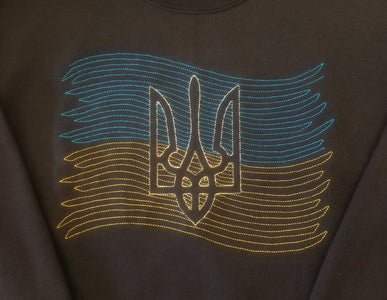 Warm and comfortable sweatshirt with the Ukrainian flag and Trident embroidery.