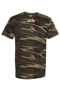Adult unisex t-shirt with embroidered Ukrainian and American flags