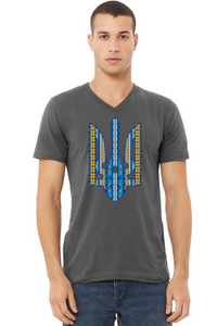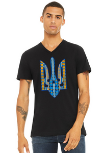 Stylish and contemporary shirt with a digital print of Ukrainian Trident.