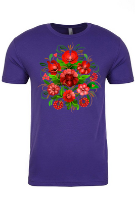 Adult t-shirts adorned with traditional Ukrainian designs applied in different decoration techniques: embroidery, digital print, and heat transfers. Embrace the beauty and heritage of Ukraine with our unique selection of high-quality t-shirts. Showcase your national pride and support for Ukraine at this difficult time of war waged again by #terroristrussia.