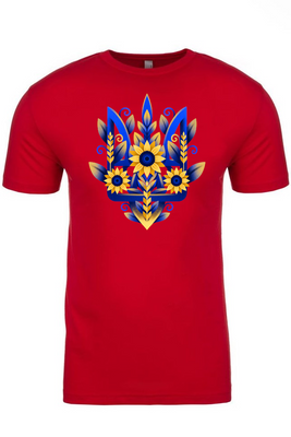 Adult t-shirts adorned with traditional Ukrainian designs applied in different decoration techniques: embroidery, digital print, and heat transfers. Embrace the beauty and heritage of Ukraine with our unique selection of high-quality t-shirts. Showcase your national pride and support for Ukraine at this difficult time of war waged again by #terroristrussia.