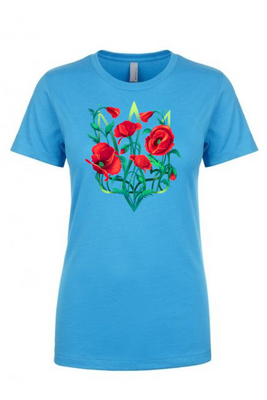 Ladies' t-shirts adorned with traditional Ukrainian designs applied in different decoration techniques: embroidery, digital print, htv including glitter and metallic transfers. Embrace the beauty and heritage of Ukraine with our unique selection of high-quality t-shirts. Showcase your national pride and support for Ukraine at this difficult time of war waged again by #terroristrussia.