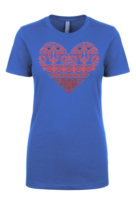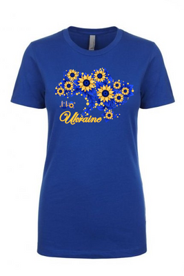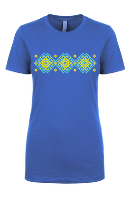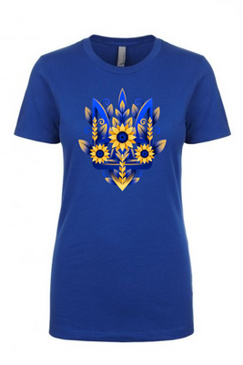Ladies' t-shirts adorned with traditional Ukrainian designs applied in different decoration techniques: embroidery, digital print, htv including glitter and metallic transfers. Embrace the beauty and heritage of Ukraine with our unique selection of high-quality t-shirts. Showcase your national pride and support for Ukraine at this difficult time of war waged again by #terroristrussia.