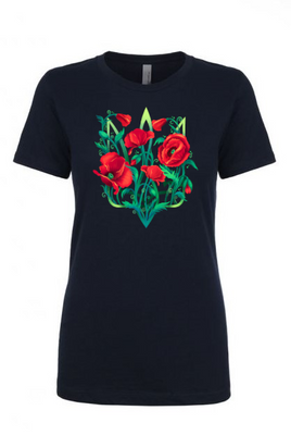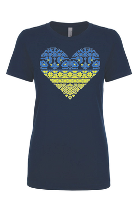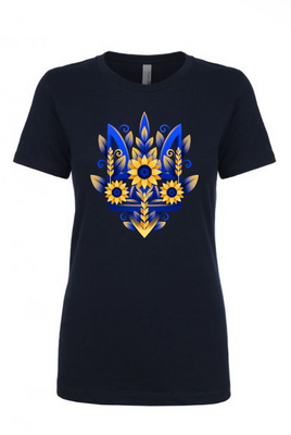 Ladies' t-shirts adorned with traditional Ukrainian designs applied in different decoration techniques: embroidery, digital print, htv including glitter and metallic transfers. Embrace the beauty and heritage of Ukraine with our unique selection of high-quality t-shirts. Showcase your national pride and support for Ukraine at this difficult time of war waged again by #terroristrussia.