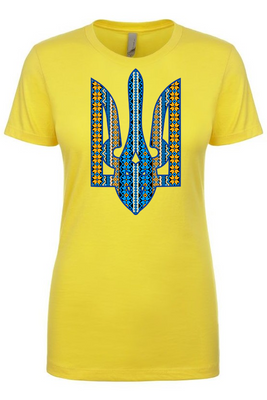 Ladies' t-shirts adorned with traditional Ukrainian designs applied in different decoration techniques: embroidery, digital print, htv including glitter and metallic transfers. Embrace the beauty and heritage of Ukraine with our unique selection of high-quality t-shirts. Showcase your national pride and support for Ukraine at this difficult time of war waged again by #terroristrussia.